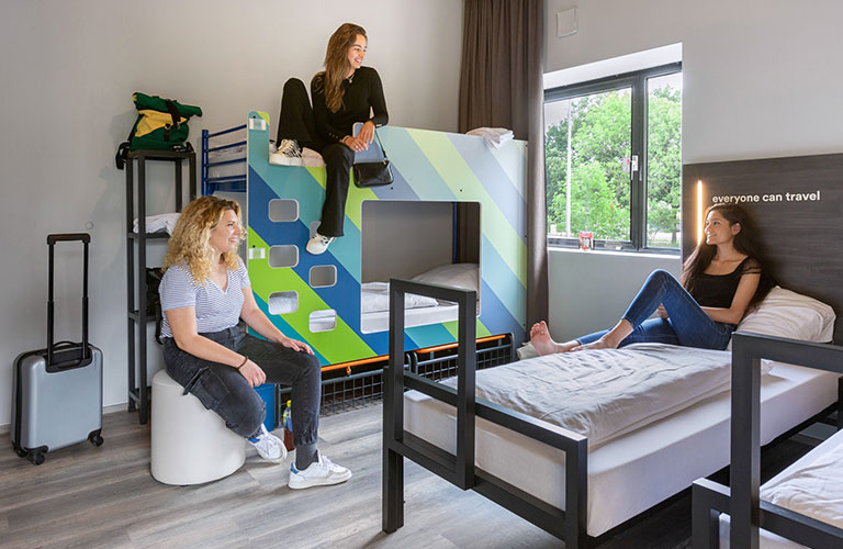 We offer different sized shared rooms in a&o hostels - you can choose between rooms for a total of four, six or eight people. All of our shared rooms are generously sized and spacious, so there is enough room for everyone from travel groups to families. If you are traveling alone and choose a shared room, you have the choice of how many other guests you would like to share a room with.
